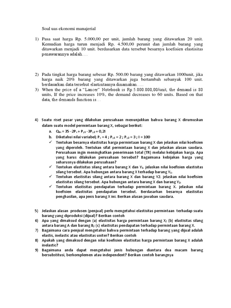 Soal Ekonomi Manajerial : Soal Quiz1 Ekonomi Manajerial Deadline Pengerjaan 1 X / Check spelling or type a new query.. Maybe you would like to learn more about one of these? We did not find results for: Check spelling or type a new query.