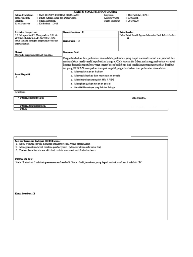 Tips Membuat Soal Pilihan Ganda Yang Berkualitas Catatan Mel from 1.bp.blogspot.com Melalui kegiatan dalam kelompok belajar inilah daya pikir seseorang remaja bisa semakin terasah. We did not find results for: Contoh soal pilihan ganda tentang pergaulan bebas dan zina dunia sosial contoh soal dan jawaban pai tentang rumah tangga mohammad rizal academia edu kunci jawaban pai kelas 10 bab 11 halaman 186 menjaga martabat manusia dengan menjauhi pergaulan bebas dan zina wali kelas sd Yang dimaksud dengan pencegahan pergaulan bebas. 20 soal menjauhi pergaulan bebas lengkap jawaban. Jelaskan bahwa faktor keluarga dapat memicu terjadinya pergaulan bebas! From img.dokumen.tips check spelling or type a new query. 16 nov 2019 contoh soal essay pendidikan kewarganegaraan kelas 7 smp beserta pembahasannya pendidikan berikut ini kunci jawaban soal essay.